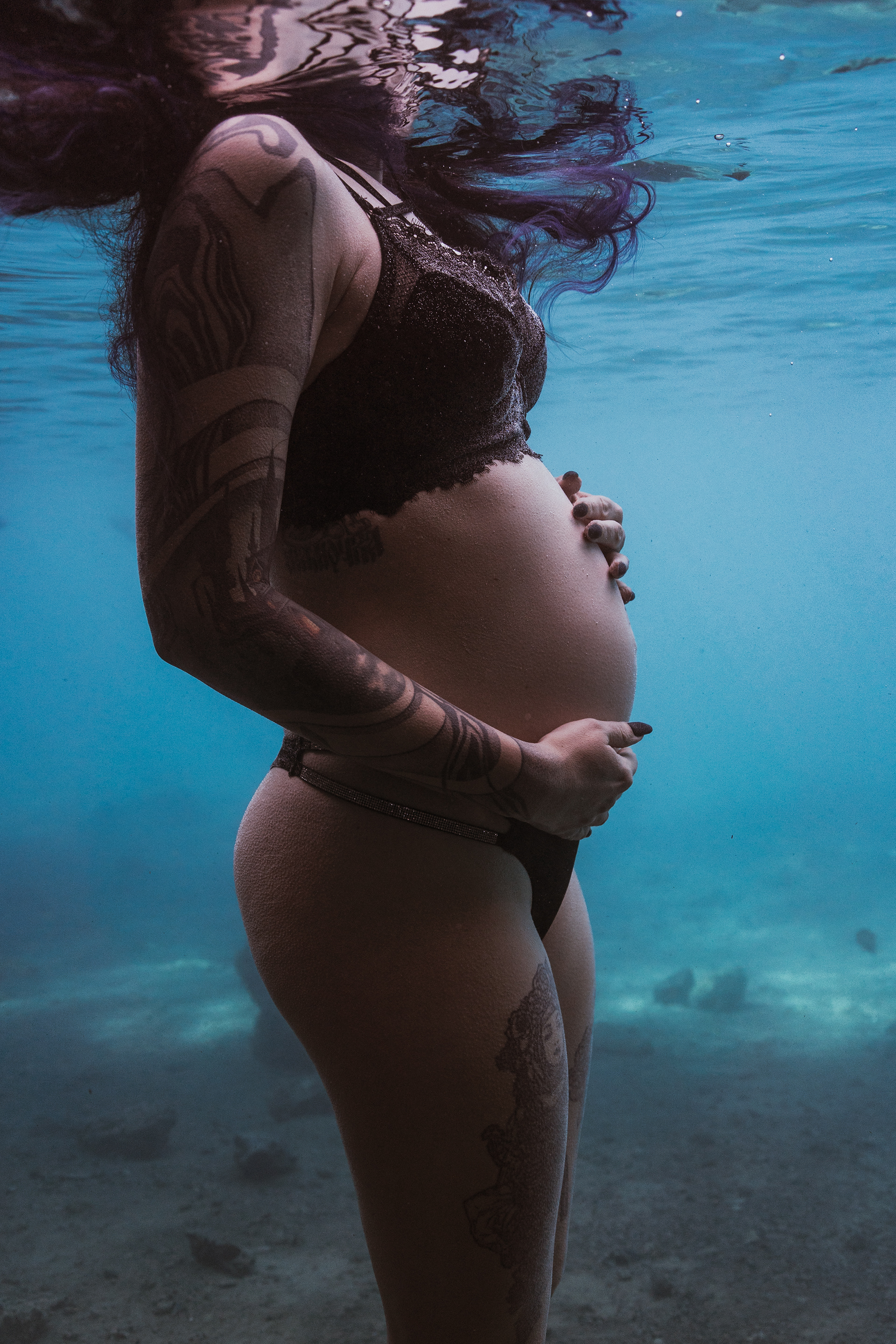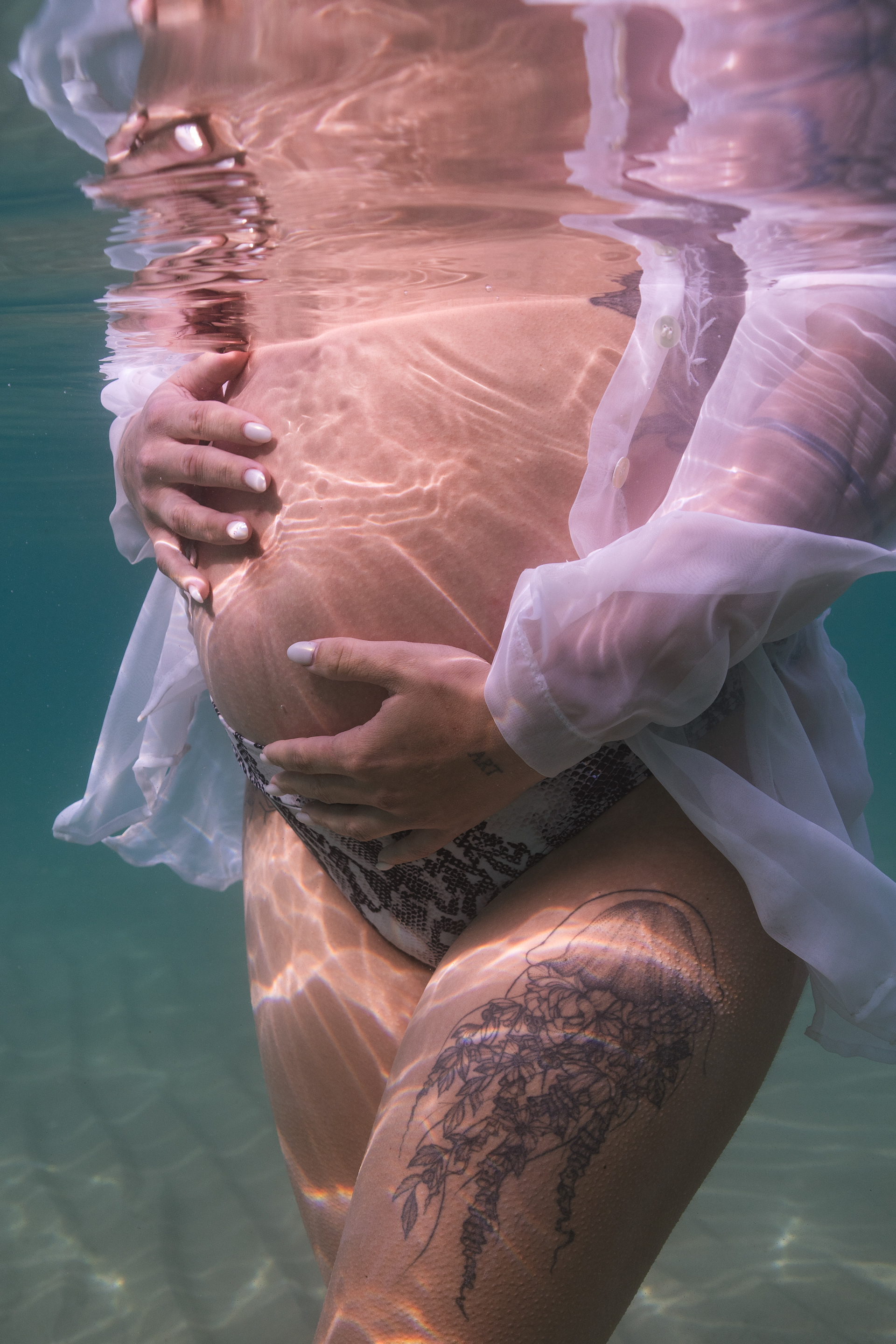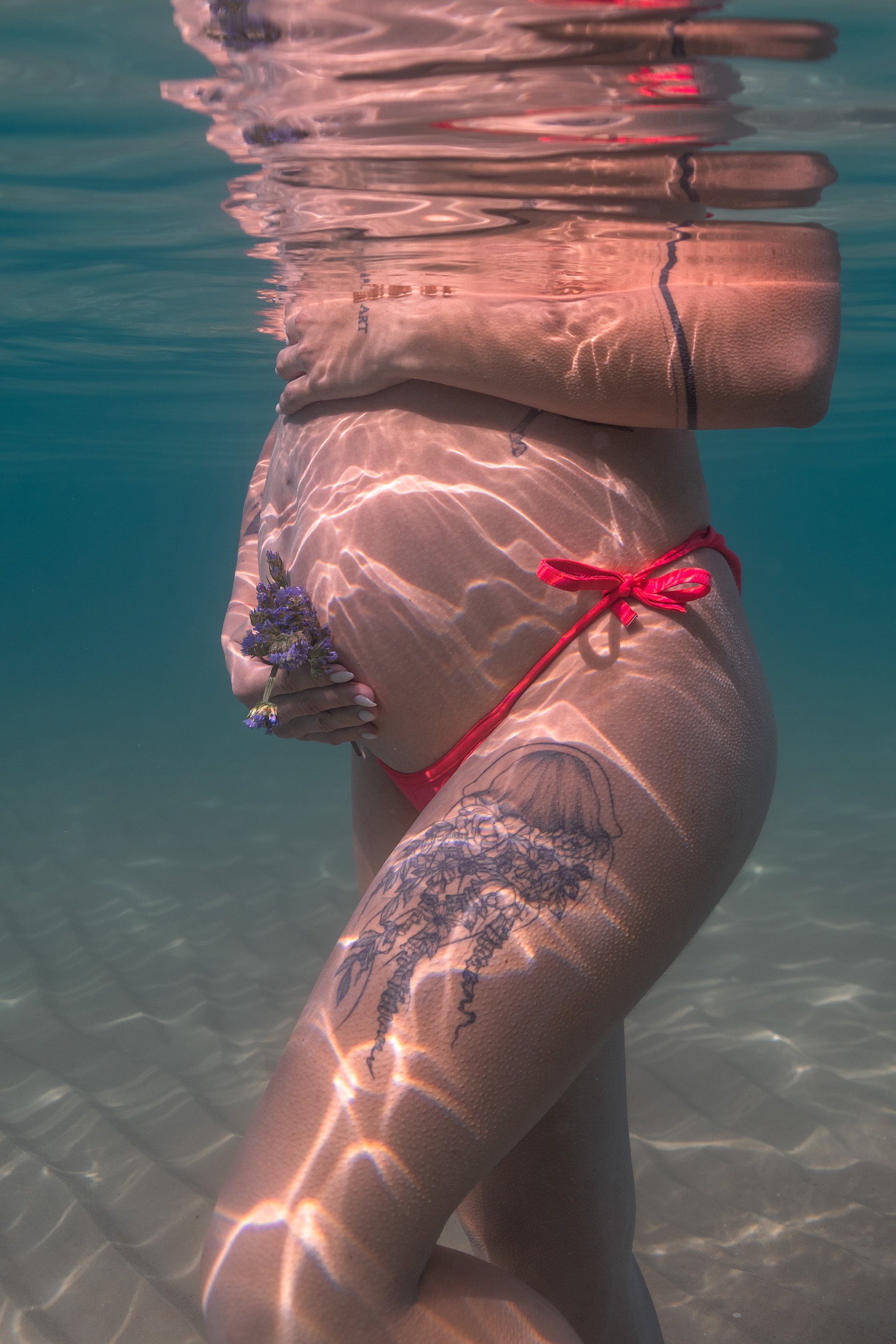 Рекомендуется проводить съёмку до 32-й недели — потому что чем больше живот, тем труднее погружаться в воду (живот просто всплывает 😊).