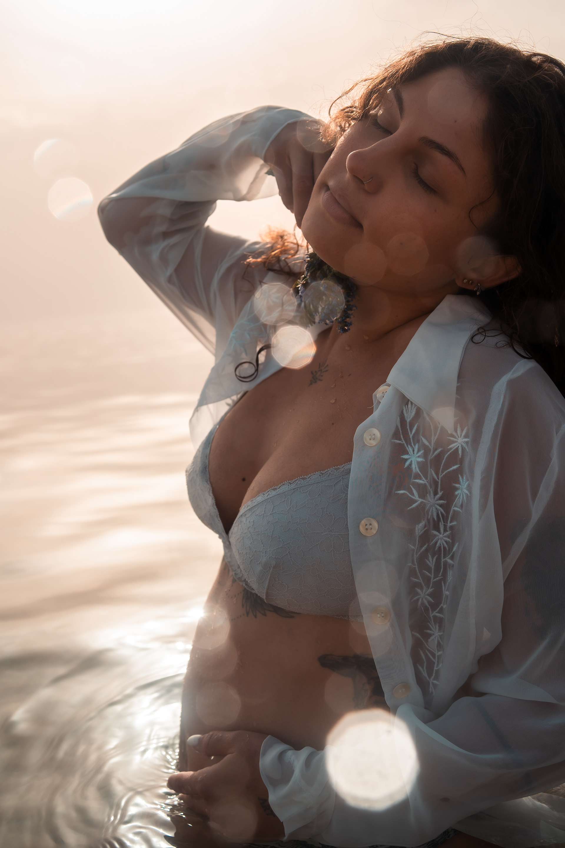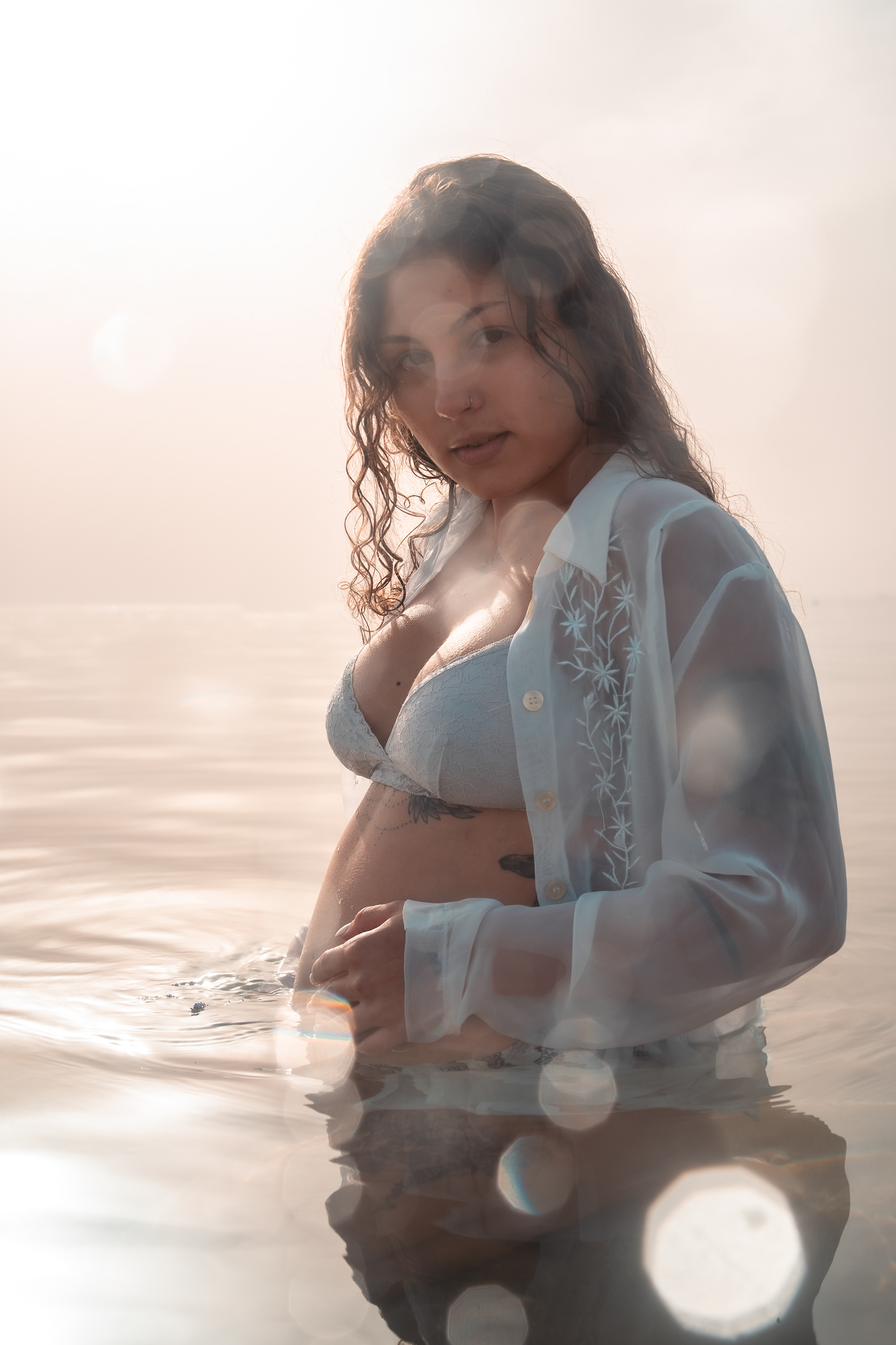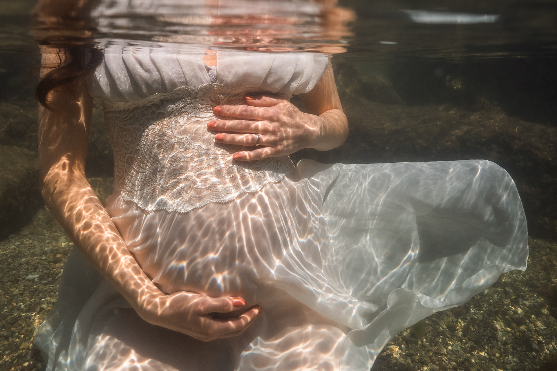 Рекомендуется проводить съёмку до 32-й недели — потому что чем больше живот, тем труднее погружаться в воду (живот просто всплывает 😊).
